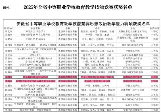 2025年10月20日,安徽省中等职业学校教育教学技能竞赛暨全国职业院校技能大赛教学能力和班主任业务能力比赛选拔赛结果正式揭晓。在本次高水平赛事中,我校各学科教师团队凭借扎实的教学功底、先进的教学理念与出色的团队协作,充分展现了新时代职教教师的专业素养与育人风采。
