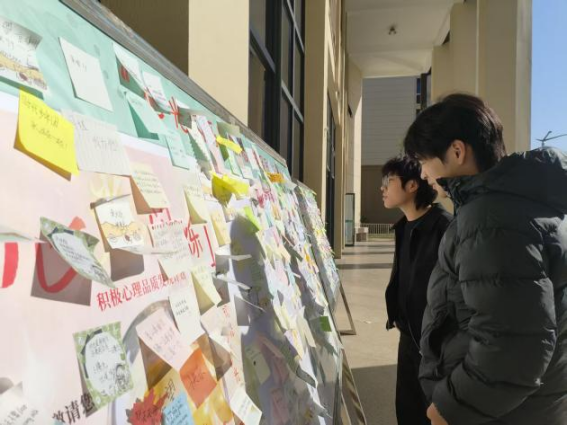 活动现场,“优势品格墙”展示了诚信、勇敢、善良、坚持等24种积极心理品质。师生们纷纷领取彩色贴纸,写下自己或身边人的品格闪光点——有对同学热心帮衬的真诚感谢,有对自己攻克难题的成长认可,还有对老师耐心指引的暖心记录,每一行文字都饱含真挚情感。写完后,大家亲手将贴纸粘贴上墙,逐渐贴满的品格墙吸引了众多师生驻足品读、参与。