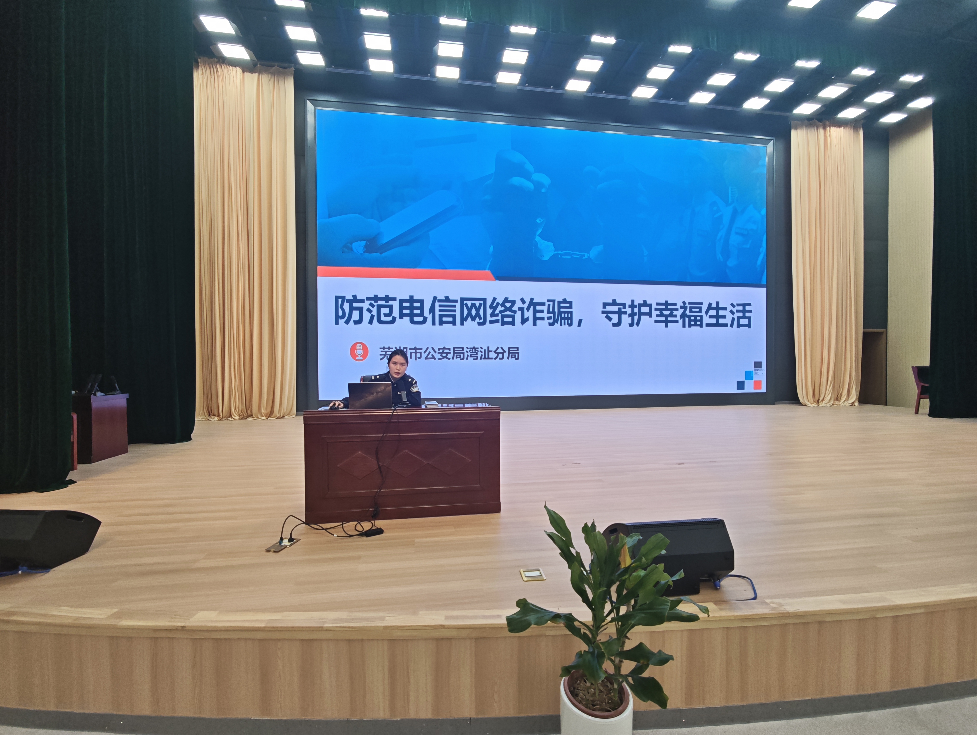 本次讲座特别邀请到芜湖市公安局湾沚分局张嘉雯警官主讲。讲座现场,张警官没有空洞的说教,而是结合当下电信网络诈骗真实数据和典型案例,深入剖析了当前反诈工作的严峻形势,重点聚焦学生群体易遭遇的刷单返利、虚假投资理财、冒充电商客服等高发诈骗类型,细致拆解诈骗分子的作案套路,一针见血点出“低投入、高回报”等诈骗陷阱的本质,警示同学们摒弃“诈骗离我很远”的侥幸心理。